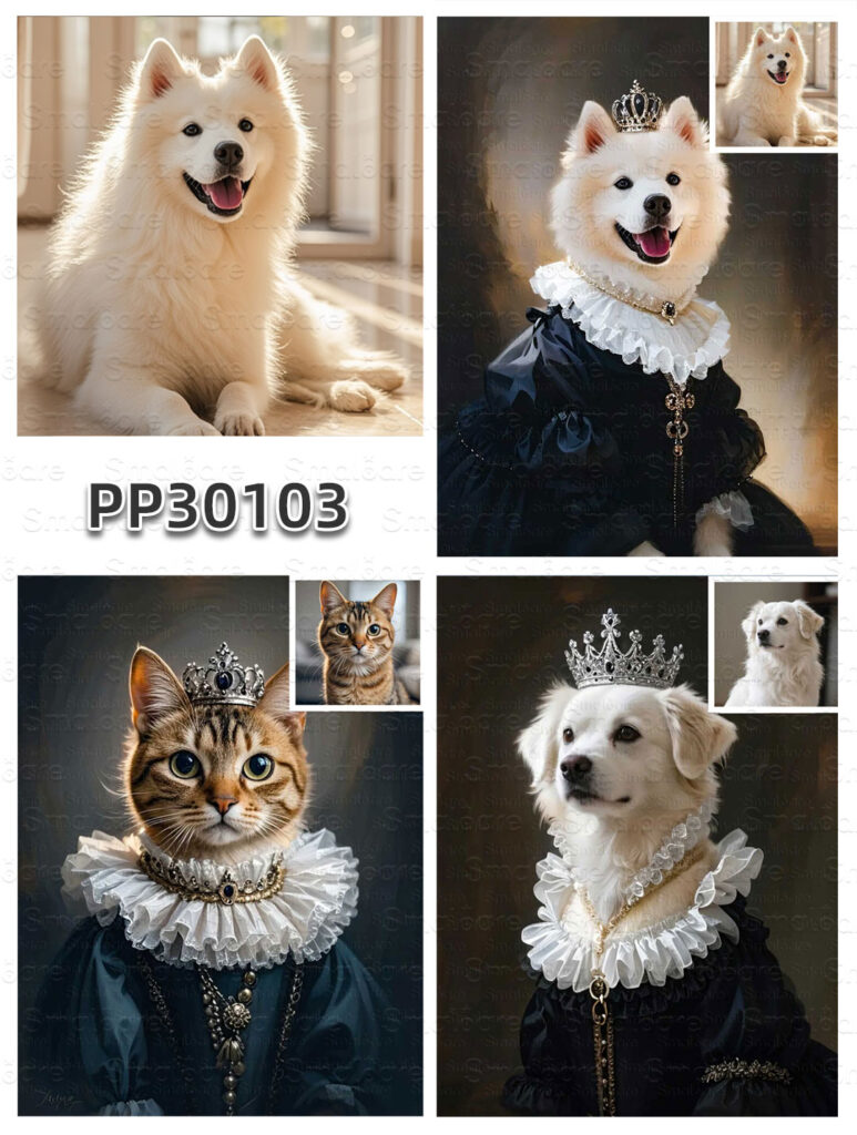 create 4 oil painting-style photos based on the picture you provide, and you can select one to be made into a physical artwork. (If the transaction is successfully completed, the remaining photos that were not chosen for production will be given to you for free.) The frame of this product consists of two parts: an inner frame and an outer frame. The inner frame is a solid wood frame used to stretch the canvas, while the outer frame is made of non-wood composite materials. Please refer to the product detail page for specific styles and effects.