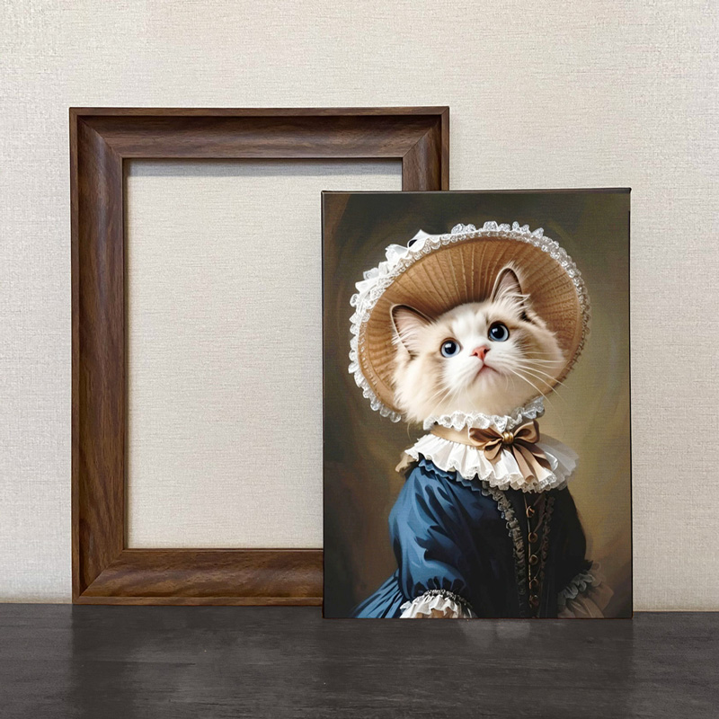 create 4 oil painting-style photos based on the picture you provide, and you can select one to be made into a physical artwork. (If the transaction is successfully completed, the remaining photos that were not chosen for production will be given to you for free.) The frame of this product consists of two parts: an inner frame and an outer frame. The inner frame is a solid wood frame used to stretch the canvas, while the outer frame is made of non-wood composite materials. Please refer to the product detail page for specific styles and effects.